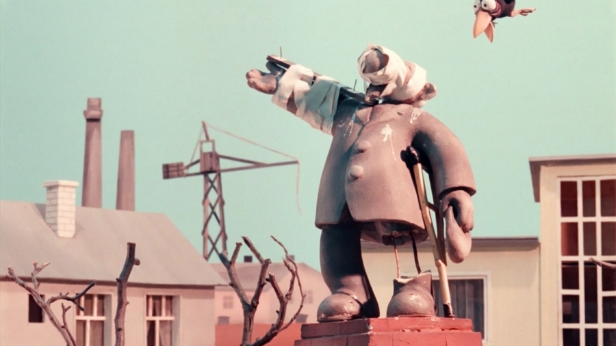 Pilsētas centrā stāv bronzas tēls, kas ļoti atgādina padomju laikā izplatītos „ļeņinekļus", un kādu dienu tam noveļas galva. Pēc izsaukuma ierodas Avārijas brigāde, taču te nekas nav glābjams, piemineklis sabrūk vēl sīkākās sastāvdaļās, kamēr nokrīt pavisam.