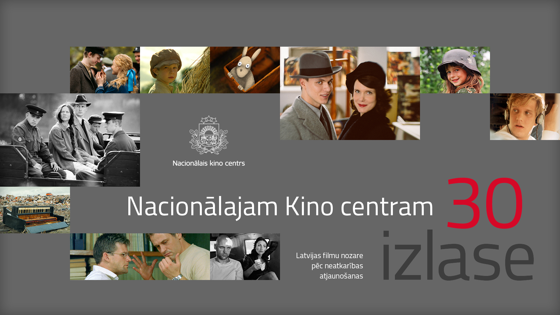 Gandrīz vienlaikus ar valsts neatkarības atjaunošanu 1991. gadā tiek dibināts Latvijas Nacionālais Kinematogrāfijas centrs (LNKC, kopš 2005. gada – Nacionālais Kino centrs), tātad NKC darbības 30 gadi vienlaikus ir arī atjaunotās valsts filmu nozares vēsture. Svinot jubileju, NKC kopā ar nozares ekspertiem un profesionāļiem atskatās uz aizvadītajām desmitgadēm, izceļot katra perioda spilgtākās, nozīmīgākās, būtiskākās un visādi citādi ievērības vērtās filmas. Kopējā 30 filmu saraksta veidošanai tika uzrunāti 30 eksperti – 15 kinoteorētiķi un 15 praktiķi (filmu veidotāji), filmas sarindotas saņemto balsu secībā un būs pieejamas portālā filmas.lv bez maksas visā Latvijā. 30 gadu izlases veidošanā piedalījās kinoteorētiķi Daira Āboliņa, Zane Balčus, Sonora Broka, Dārta Ceriņa, Kristīne Matīsa, Inga Pērkone, Dmitrijs Rancevs, Agris Redovičs, Elīna Reitere, Dita Rietuma, Kristīne Simsone, Anita Uzulniece, Ieva Viese-Vigula, režisori un producenti Uldis Cekulis, Antra Cilinska, Andrejs Ēķis, Gints Grūbe, Edmunds Jansons, Vilnis Kalnaellis, Pēteris Krilovs, Jānis Putniņš, Ivars Seleckis, Dāvis Sīmanis, Guntis Trekteris, Roberts Vinovskis, Kristīne Želve, Latvijas Kinematogrāfistu savienības priekšsēdētāja, kinomāksliniece Ieva Romanova.